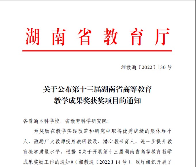 《关于公布第十三届湖南省高等教育教学成果奖获奖项目的通知》附件:/20220342.pdf