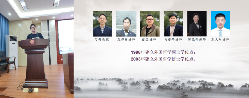 其次,马克思主义哲学教研室主任彭婷老师、中国哲学教研室主任肖平老师、外国哲学教研室主任张含老师、伦理学教研室文贤庆老师、科学技术哲学教研室主任李波老师、逻辑学教研室主任王淑庆老师、美学教研室主任张霖源老师、宗教学教研室主任尹哲老师,依次对各教研室的师资等情况作了简要而全面的介绍。