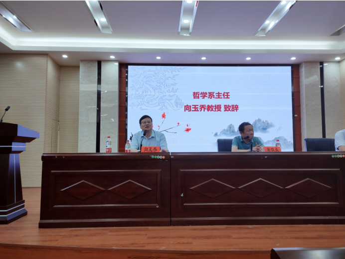 首先,湖南师范大学道德文化研究院常务副院长暨哲学系主任向玉乔教授致辞。他对新入学的哲学系2021级全体硕博研究生表示热烈欢迎,进而从人才培养、师资力量、学术平台等方面介绍了哲学系的优势与特色,然后对研究生新生们提出了以研究为根本、树立符合中庸之道的学术理念、产出高品质的研究成果等三点建议和要求,最后表达了对同学们研有所得、无愧于心的殷切期望。