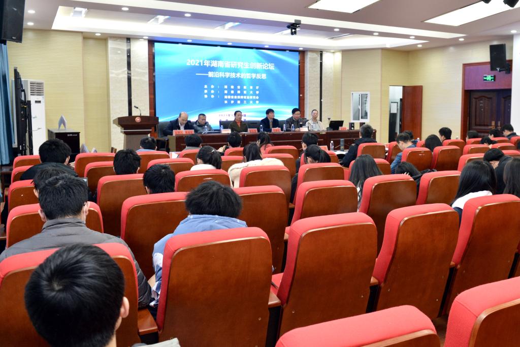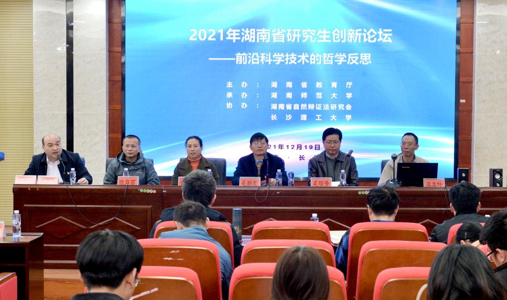 12月19日,由湖南省教育厅主办,湖南师范大学承办,湖南自然辩证法研究会和长沙理工大学协办的“2021年湖南省研究生创新论坛”以湖南师范大学为线下主会场、长沙理工大学为线下分会场,并结合线上线下的新颖形式如期展开。会议以“前沿科学技术的哲学反思”为主题,来自清华大学、中国人民大学、中国科学院大学、中央党校、中山大学、武汉大学、长沙理工大学和湖南师范大学等36所高校的108名硕士研究生、博士研究生和22位专家学者一起参加了五个专题共14个场次的会议。