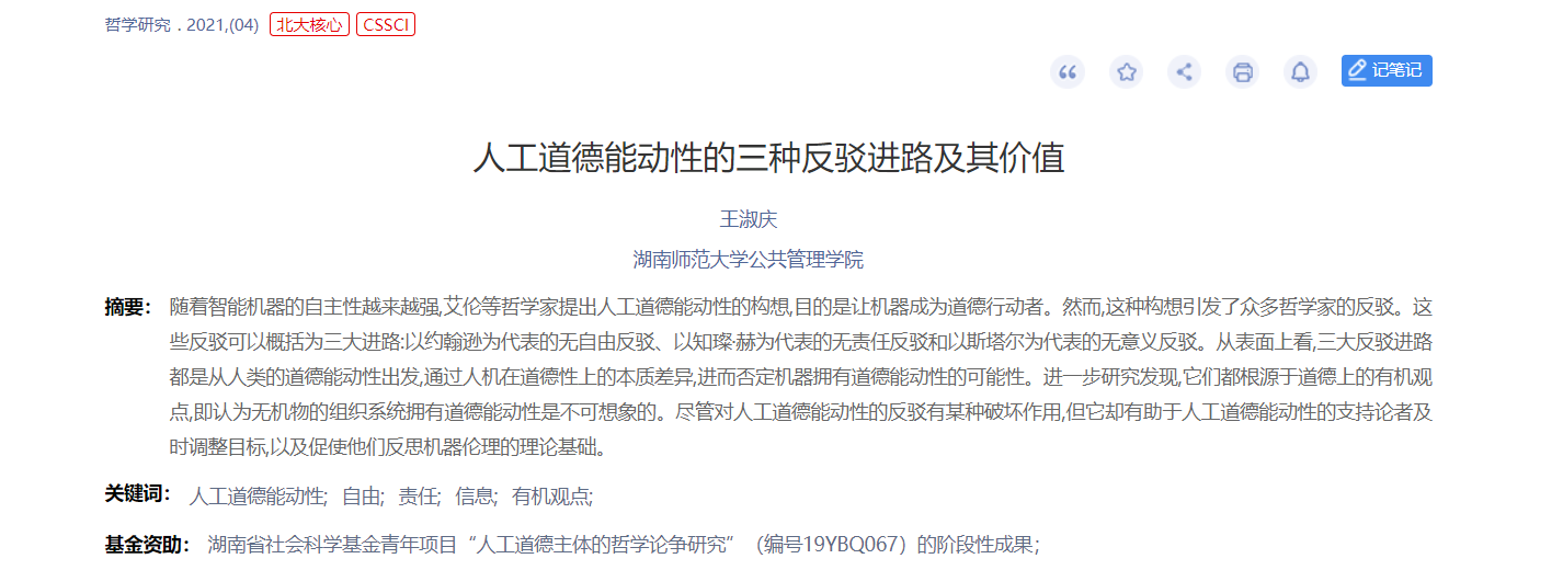 关键词:人工道德能动性;自由;责任;信息;有机观点;
