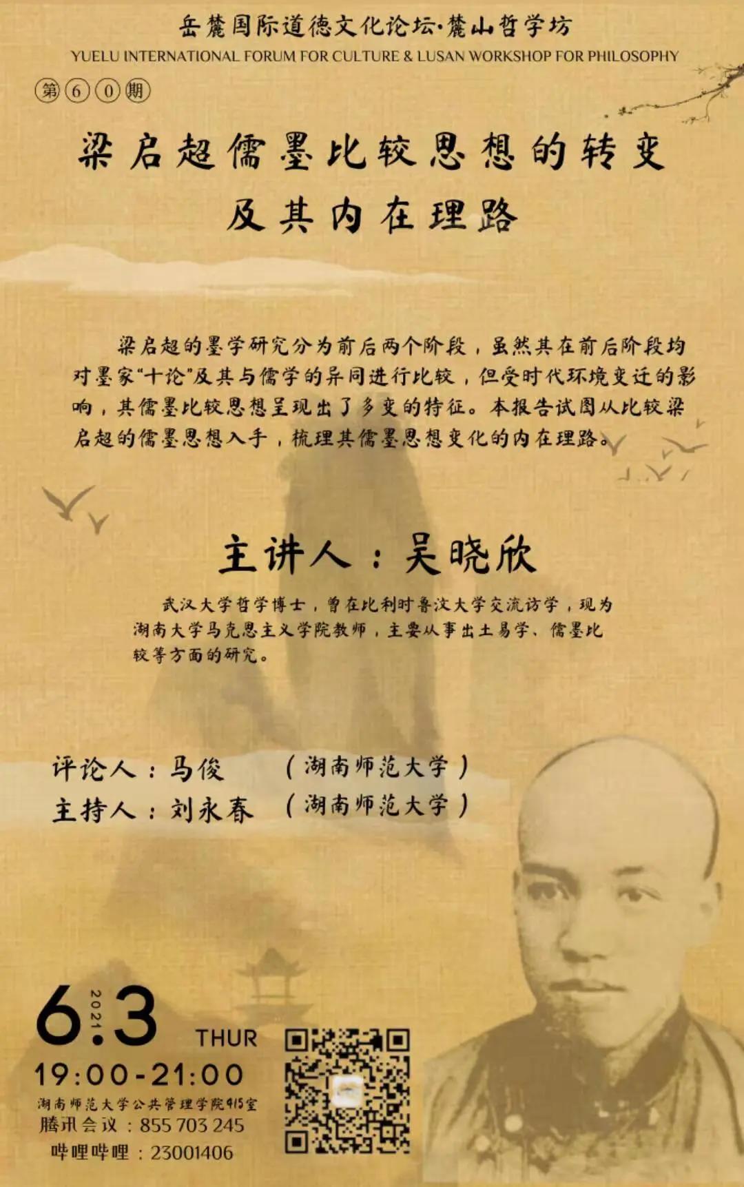 梁启超的墨学研究前后分为两个阶段,虽然其在前后阶段均对墨家“十论”及其与儒学的异同进行比较,但受时代环境变迁的影响,其儒墨比较思想呈现出了多变的特征。在前期,梁启超出于宣传爱国主义的现实需要,对墨家“忍苦痛”“轻生死”的牺牲精神极为赞赏,并突出墨家天志、明鬼、非命等学说为个人行为提供的保障作用,激发民众寻求救亡图存之道的爱国热情。在后期,一方面受国内五四运动的影响,另一方面亲历一战失败后满目疮痍的欧洲,梁启超以更加冷静的心态研究墨学,在学理层面对墨家兼爱、宗教、实利以及政术方面的主张进行深刻的反思和批判。综观梁启超研究墨学的全过程,其虽然在某一时期对墨学表现出强烈的偏好,但基本出于回应和改变现实社会的需要,其与传统儒学的关联并未切断,而在墨学研究的后期,其儒家立场表现得尤为鲜明。